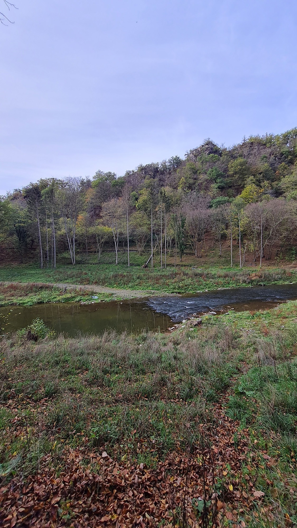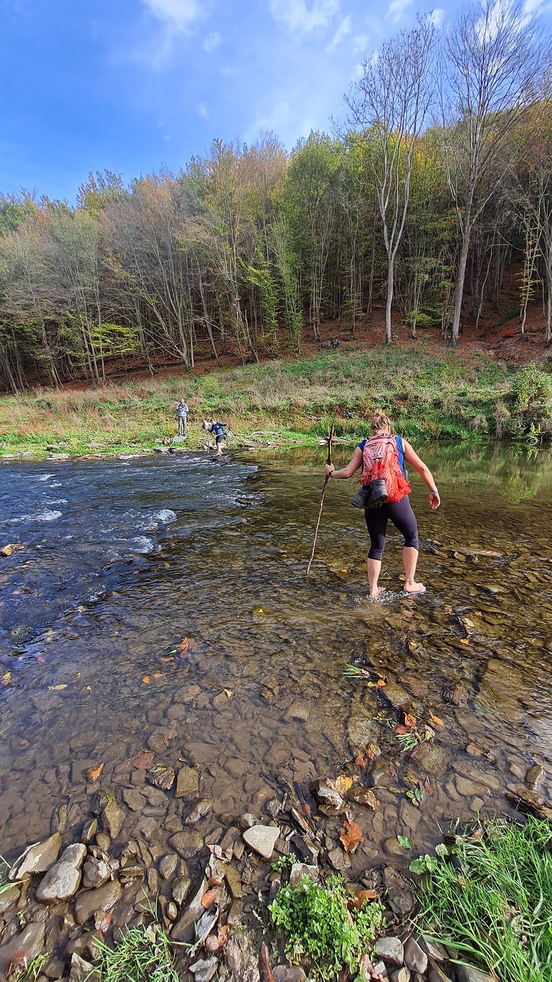 Wir staken durchs kalte Wasser, bei sanfter Strömung und über glitschige Steine.