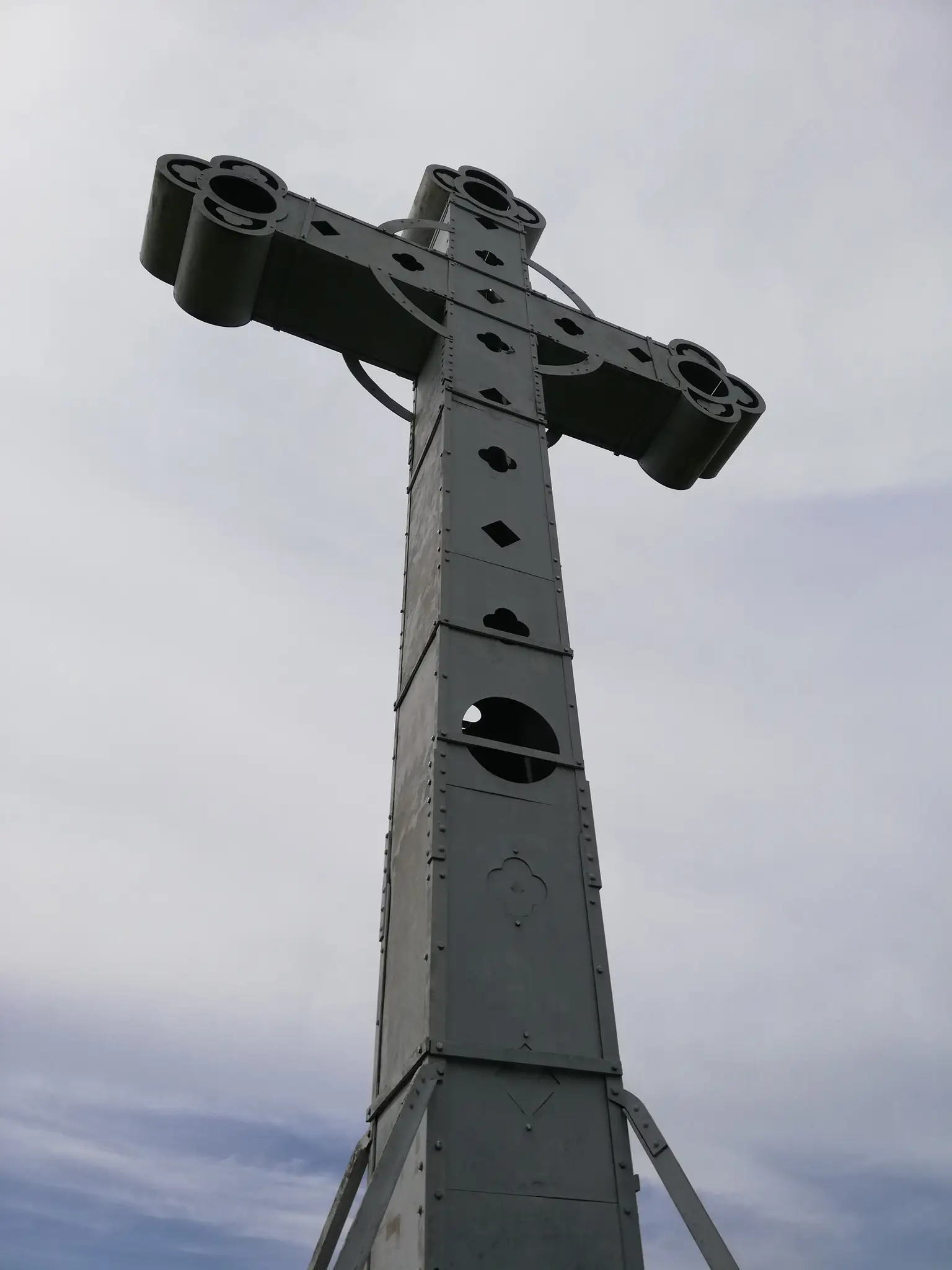 Der leicht ansteigende Weg führt uns zum „Kreuz im Venn“ – einem imposanten eiserneren Kreuz auf der Richelsley. Über Stufen kann diese einfach erklommen werden.