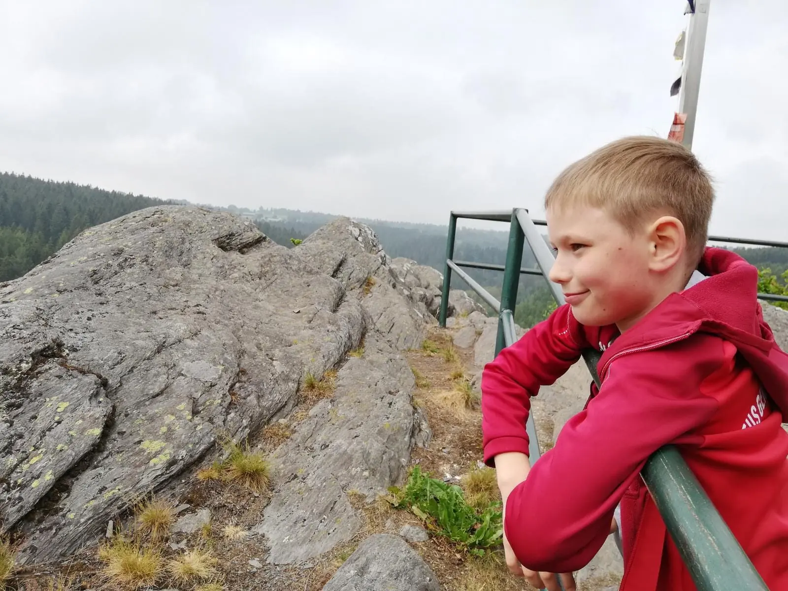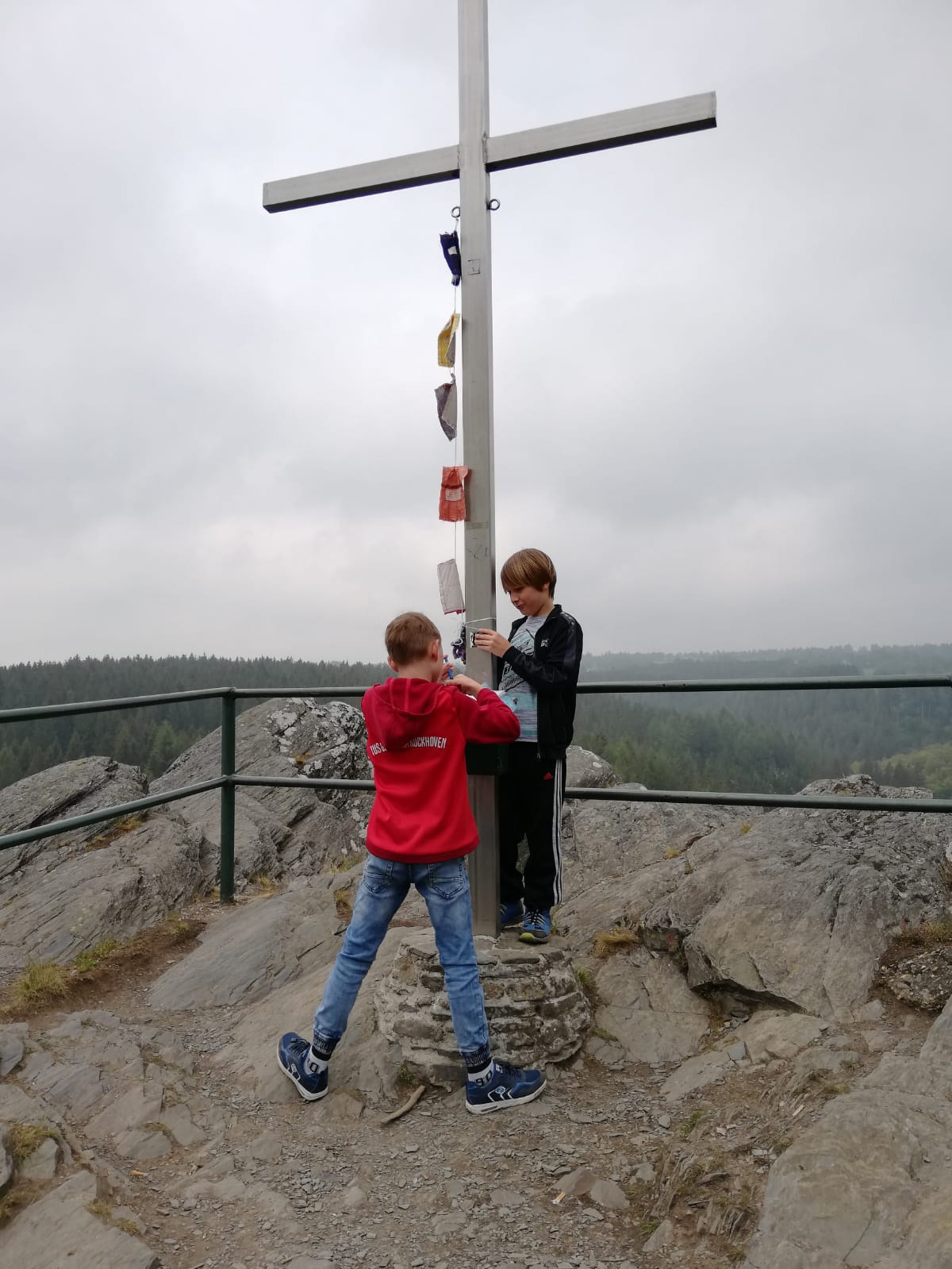 Der felsige Gipfel ist von allen Seiten mit einem Geländer eingefasst.