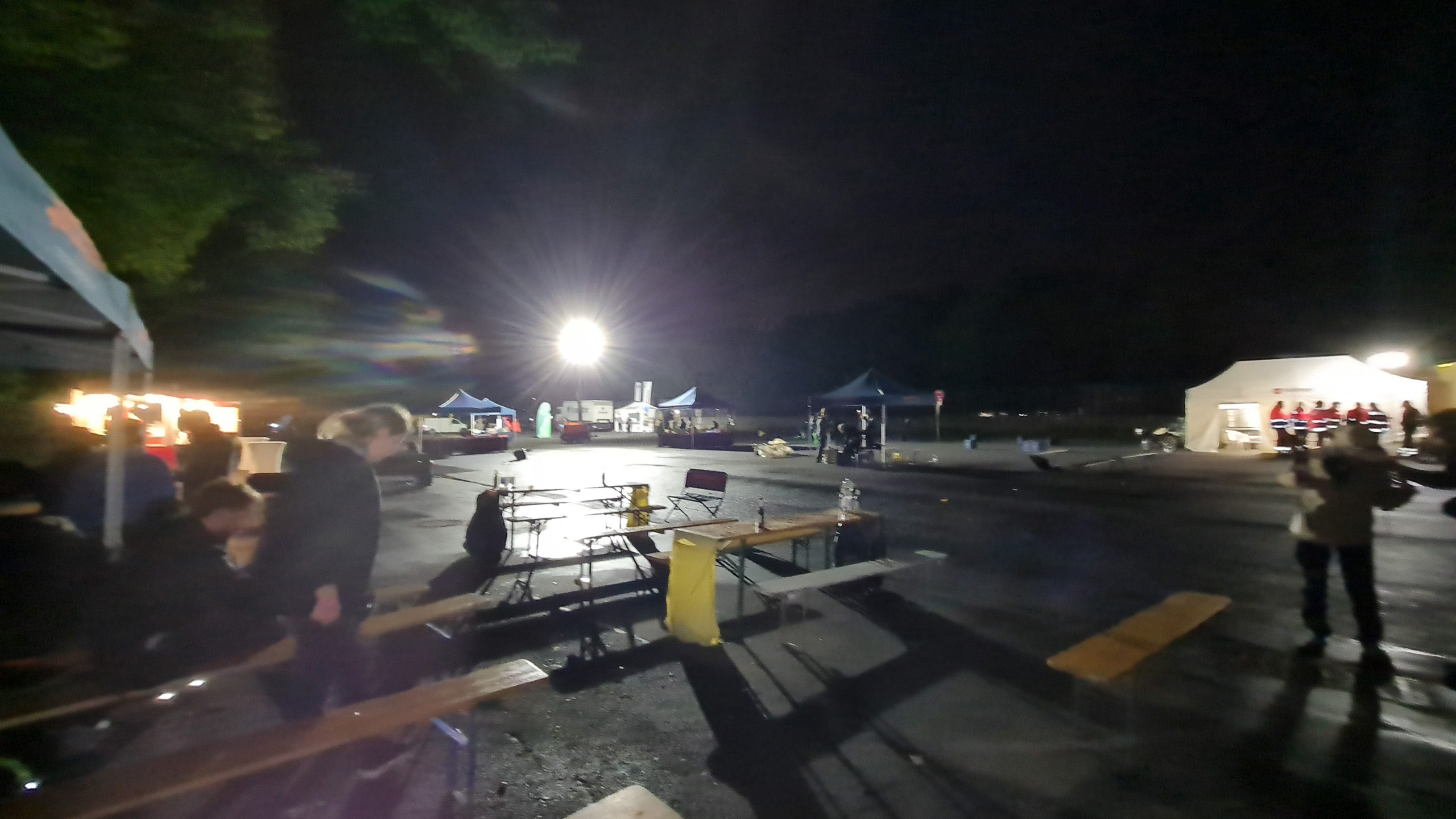 Pavillons knickten ein und drohten wegzufliegen. Es wurde hektisch um uns herum.