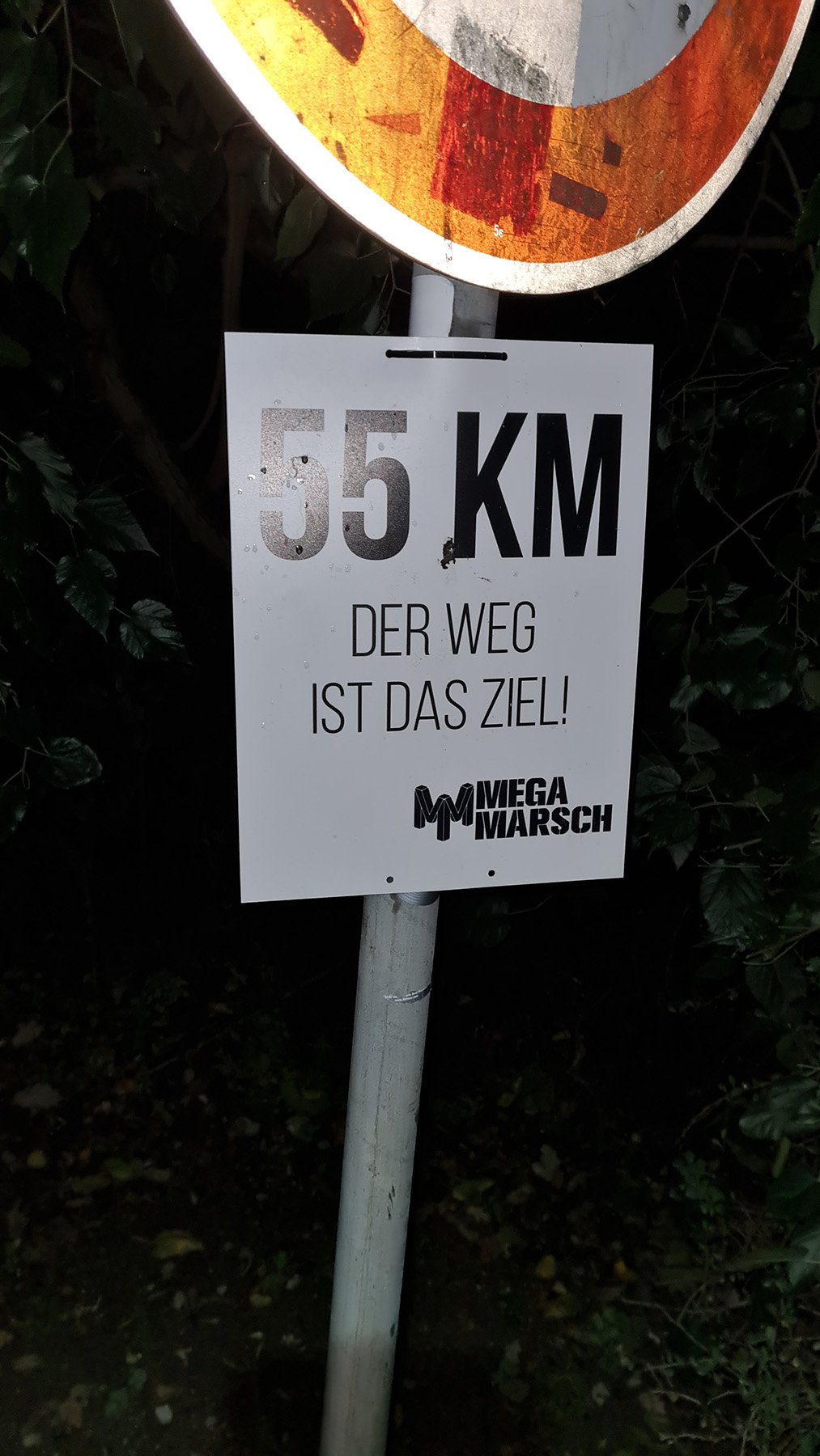 Haben wir in der Vergangenheit locker die 50er Märsche gemeistert, so sollte ein Megamarsch über 100 Kilometer doch für uns machbar sein. Die Länge der Strecke, der Weg durch die Nacht, das gemeldete Regenwetter – alles kein Problem, solange wir das gemeinsam durchstehen.