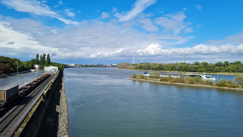 Als hätte der Wettergott seinen Fehler bemerkte, schickte er hinterrücks ein fettes Gewitter den Rhein hinauf: Aus der Ferne nahmen wir Blitze und Grollen wahr.